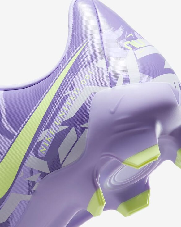Примусьте світ звернути на себе увагу за допомогою Nike United Phantom GX 2 Academy. Лінійка Nike United Pack вшановує зірок, які сяють, коли гра на кону. Натхненні такими спортсменками, як Софія Вілсон і Дейна Кастелланос, дизайнери Nike використовували сміливі кольори й руйнівну графіку, що символізує завзятість і амбіції, необхідні для досягнення вершини. У цій моделі розширили зону дотику NikeSkin у порівнянні з попередньою версією. Завдяки цьому ваша нога стає ще ближче до м'яча, що поліпшує контроль під час дриблінгу та пасу в сухих і вологих умовах. Вона охоплює всю ударну зону бутс, забезпечуючи чистий удар по м'ячу. Круговий малюнок підошви та шипів Cyclone 360, стратегічно розташований у передній частині стопи, допомагає вам швидко маневрувати. М'який верх забезпечує комфорт від старту до фінального свистка. Для використання на натуральних і синтетичних покриттях. Устілка з амортизацією.