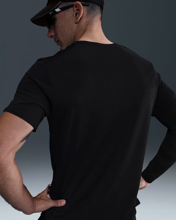 Розроблена для бігу, футболка Miler Breathe забезпечує додаткову вентиляцію завдяки перфорованій легкій тканині. Колекція Breathe оновлює спортивний одяг перфорованою тканиною для кращої циркуляції повітря під час тренування. Технологія Nike Dri-FIT відводить піт від шкіри для швидшого випаровування, допомагаючи вам залишатися сухими та почуватися комфортно. Ткана етикетка «Nike Breathe».