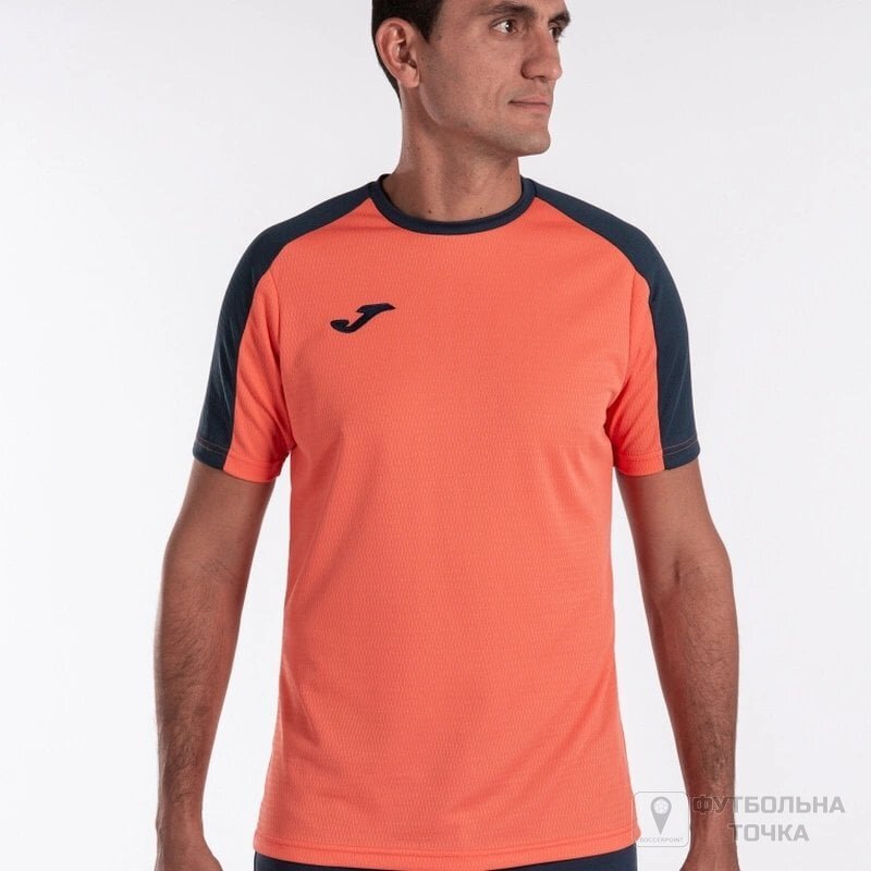 Футболка ECO Championship виготовлена зі 100% переробленого поліестеру, що знижує шкідливий вплив на довкілля. Має короткі рукави та візерунок контрастного кольору на рукавах і комірі. Тип крою приталений.