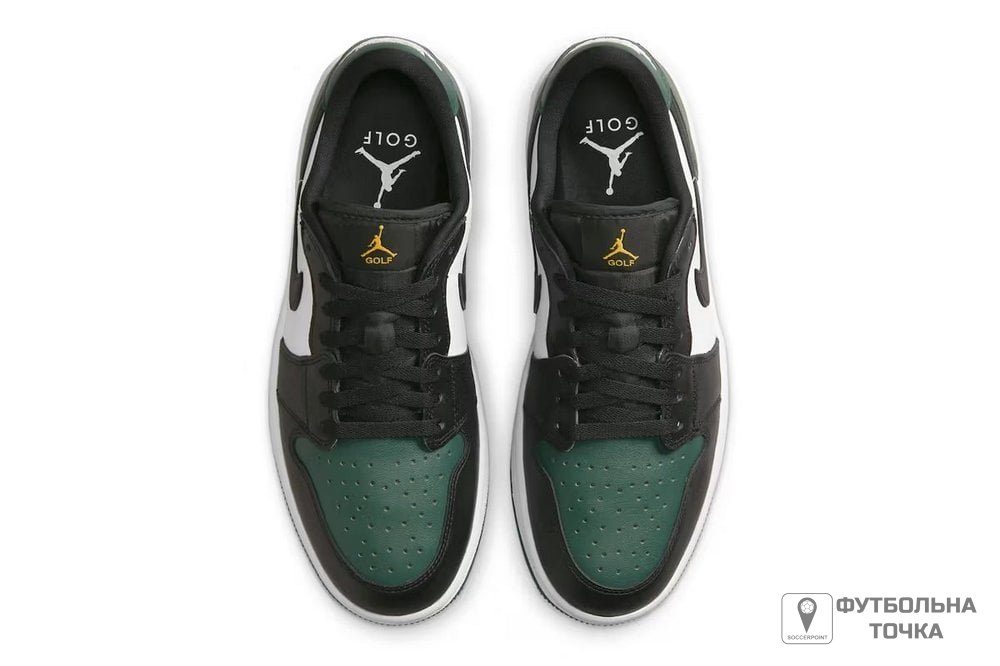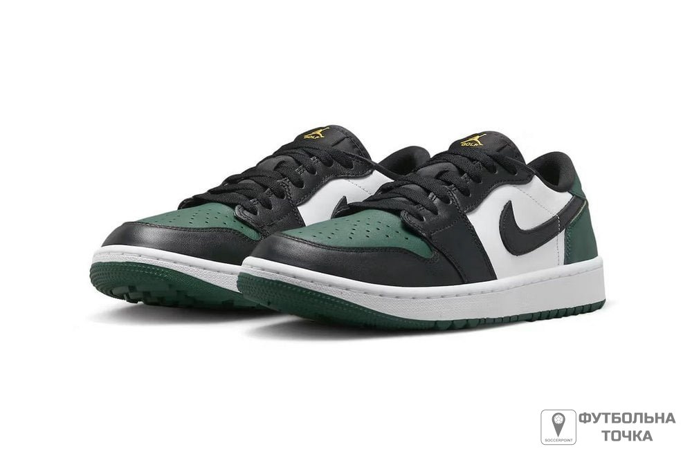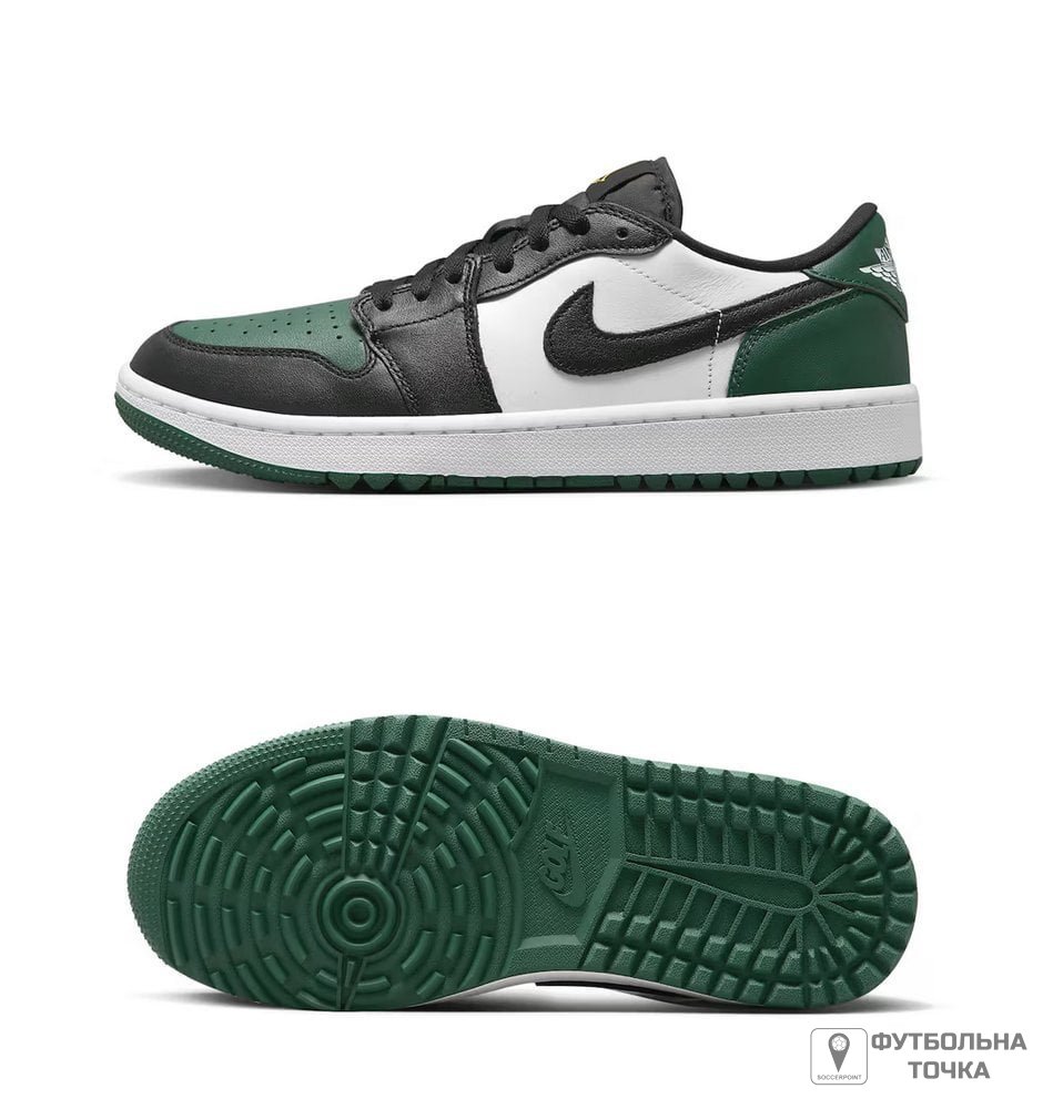 Виготовлені з преміальних матеріалів, кросівки Air Jordan 1 Low Golf Noble Green мають оновлену підошву, що забезпечує відмінне зчеплення з полем для гольфу. Шкіряний верх кросівок підкреслений боковими вставками Swooshes та оновленим брендингом Jordan. Проміжна підошва Air під ногами забезпечує комфорт, м'яка підкладка в комірі додає додаткової підтримки, а класична шнурівка забезпечує індивідуальну посадку. У комплекті з перфорацією для ефективної вентиляції, купити і продати Air Jordan 1 Low Golf Noble Green зі шнурівкою.
