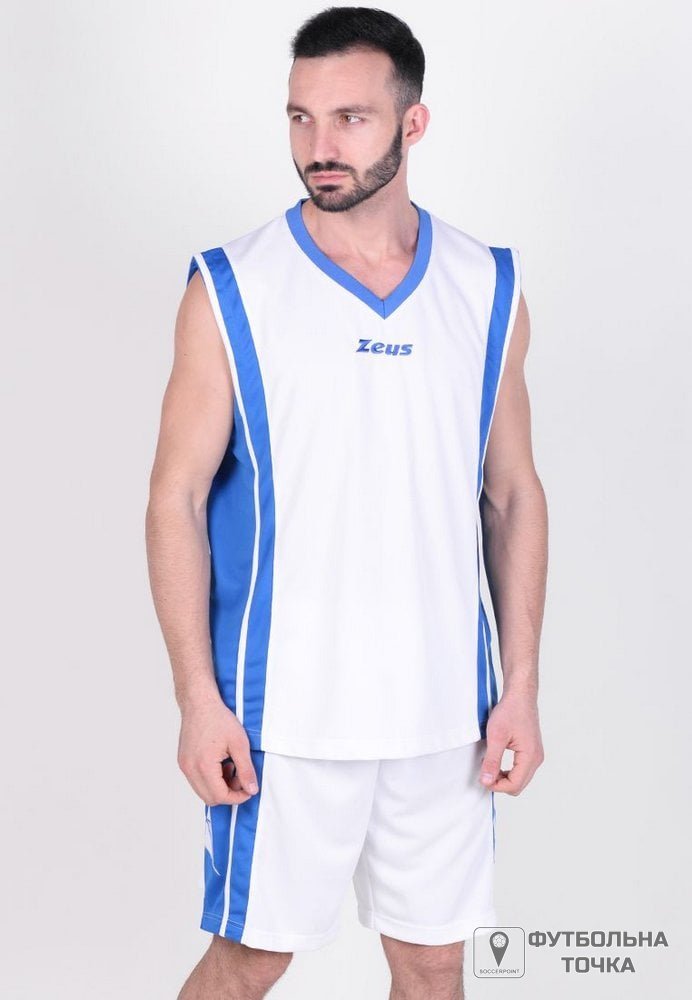 KIT BOZO - комплект баскетбольної форми від італійського бренду Zeus, який складається з майки і шортів. Відмінною рисою даної баскетбольної форми є відсутність навіть найкоротших рукавів. Така конфігурація майки дає спортсмену максимум свободи в рухах. Руки, як головний інструмент баскетболіста, завжди відкриті і не сковуються зайвої тканиною. Сам ігровий комплект підійде не тільки для змагань, а й для тренувань. Склад: 100% поліестер. Синтетичні волокна добре вбирають вологу і віддають її на зовнішню частину виробу. Завдяки цій характеристиці тканини, баскетболіст буде відчувати себе комфортно протягом всієї гри і по її закінченню.