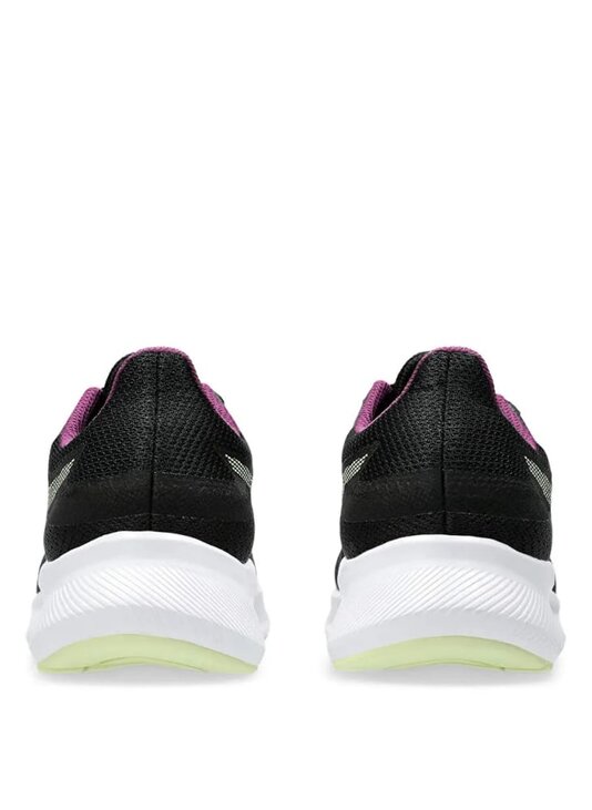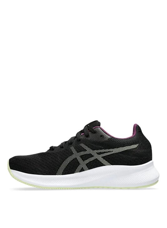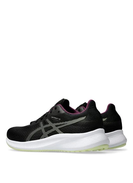 Кросівки Asics Patriot 13 у класичному чорному кольорі з яскравими фіолетовими акцентами на внутрішній підкладці та білою підошвою, що створює стильний контраст. Ця модель розроблена для забезпечення комфорту та підтримки під час бігу.