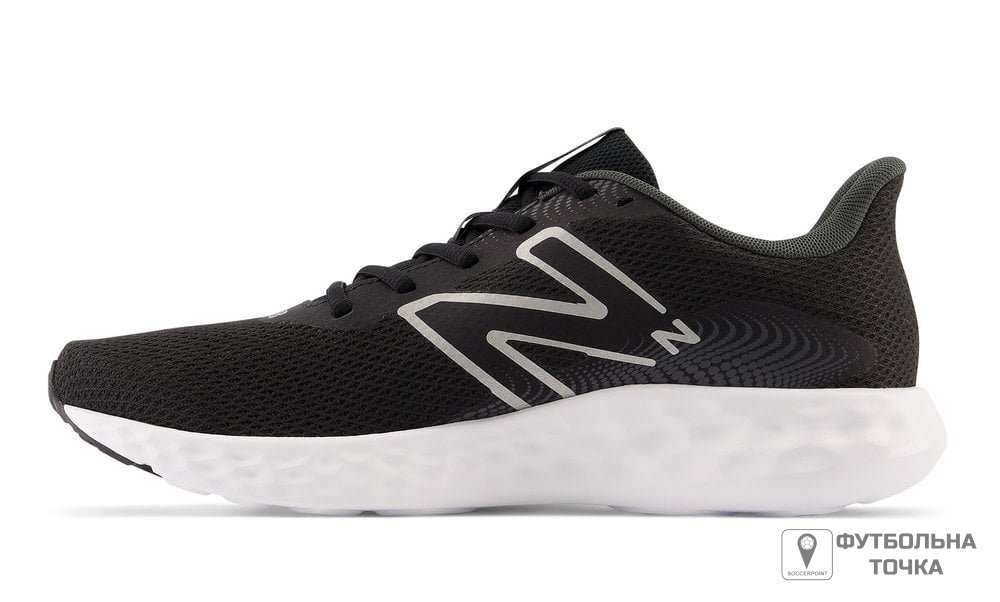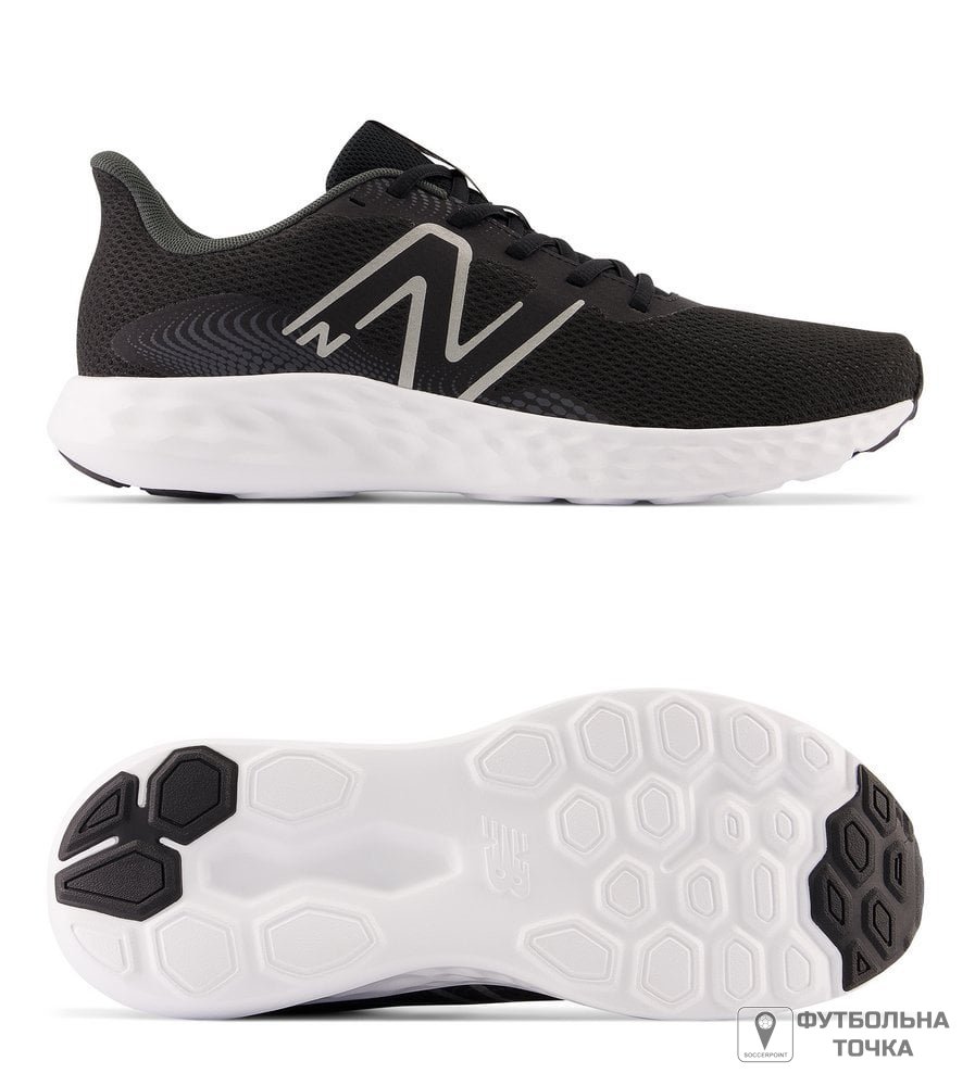 Модель 411 отримала оновлення проміжної підошви, що стала м’якшою для забезпечення комфорту впродовж дня. Верхня частина поєднує два види плетення, та сублімацію, чим натякає на свій родовід від 800ї серії. Формовані вставки забезпечують чудовий комфорт.