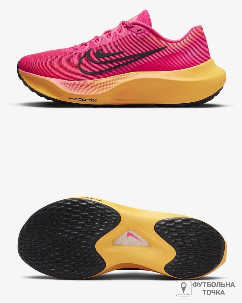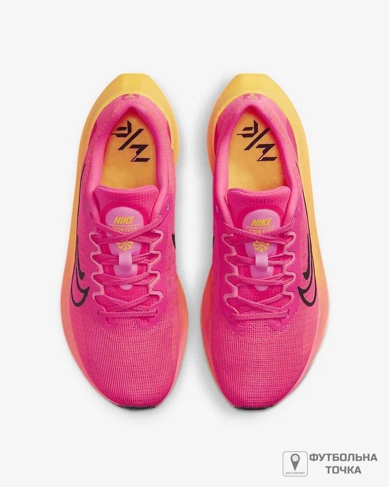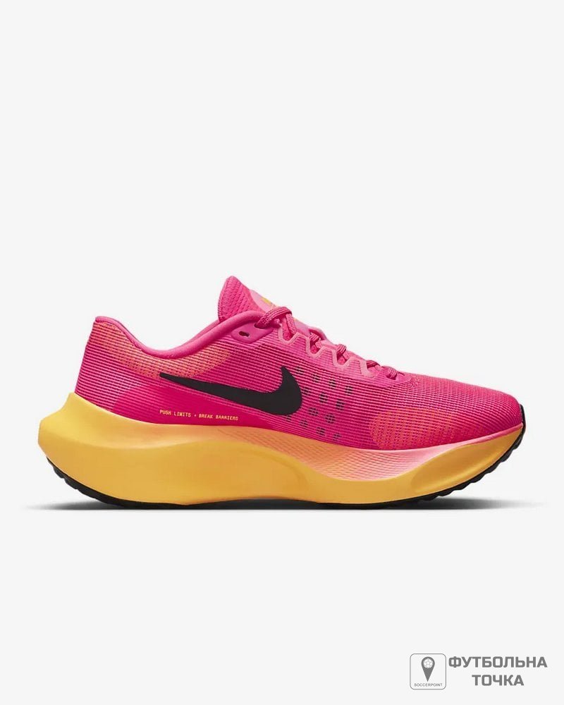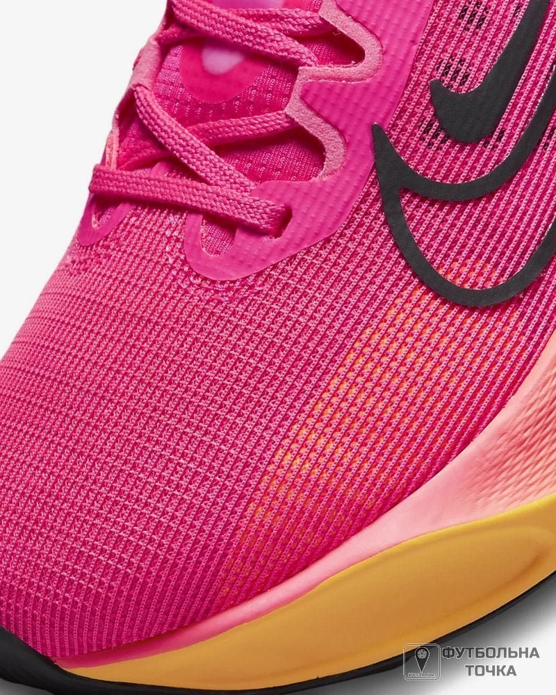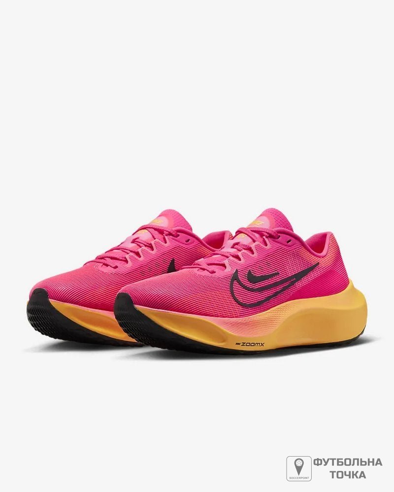 Підніміть свої тренування на новий рівень з почуттям безпеки, що забезпечується жіночими біговими кросівками Nike Zoom Fly 5. Ці багатофункціональні кросівки доповнені більш дихаючим і м'яким верхом, а більш еластична внутрішня частина забезпечує відчуття носіння, що дозволяє легко вдягати та знімати. Верх виконаний з легкої сітки, яка забезпечує більш м'яке та повітропроникне відчуття та забезпечує комфорт на ногах. Нещодавно впроваджена піна ZoomX у міжпідошві піднімає вже шановні та надійні кросівки на ще більш високий рівень продуктивності. Кросівки мають неглибокий профіль із класичним шнурівкою та логотипом Nike. Пластина із вуглецевого волокна забезпечує плавний перехід і просто підштовхує вас до наступного кроку. Гумова підошва забезпечує відмінне зчеплення та безпеку при ходьбі.