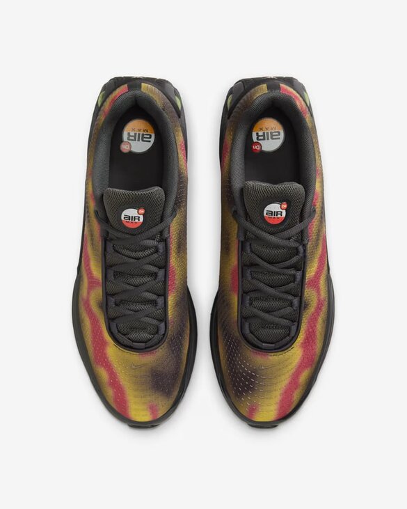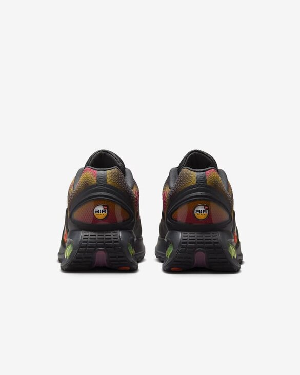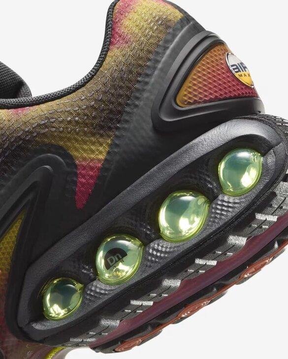 Air Max Dn оснащені системою Dynamic Air з двома трубками подвійного тиску, яка створює відчуття реактивності при кожному кроці. Це призвело до створення футуристичного дизайну, який досить комфортний як вдень, так і вночі. Крім того, ця версія прикрашена абстрактним малюнком на поверхні. Система Dynamic Air складається з двох трубок подвійного тиску. Максимальний тиск в п'яті і мінімальний тиск в середній частині стопи забезпечують рівномірний розподіл повітря всередині кожної пари для плавного переходу при кожному кроці. Багатошарова сітка верху забезпечує легкість і повітропроникність, а тактильний принт створює текстурований ефект. М'який піноматеріал оточує амортизуючу систему для поліпшених відчуттів, забезпечуючи унікальну м'якість і підтримку.