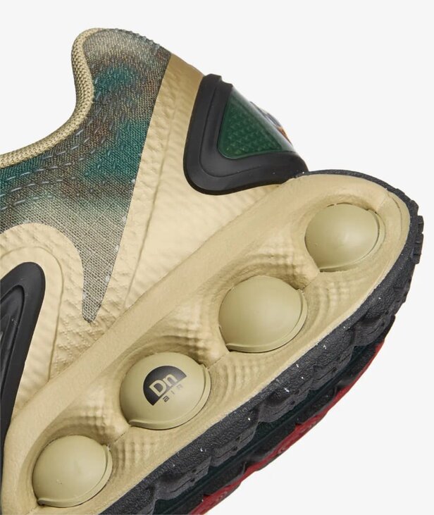 Air Max Dn оснащені системою Dynamic Air з двома трубками подвійного тиску, яка створює відчуття реактивності при кожному кроці. Це призвело до створення футуристичного дизайну, який досить комфортний як вдень, так і вночі. Крім того, ця версія прикрашена абстрактним малюнком на поверхні. Система Dynamic Air складається з двох трубок подвійного тиску. Максимальний тиск в п'яті і мінімальний тиск в середній частині стопи забезпечують рівномірний розподіл повітря всередині кожної пари для плавного переходу при кожному кроці. Багатошарова сітка верху забезпечує легкість і повітропроникність, а тактильний принт створює текстурований ефект. М'який піноматеріал оточує амортизуючу систему для поліпшених відчуттів, забезпечуючи унікальну м'якість і підтримку.