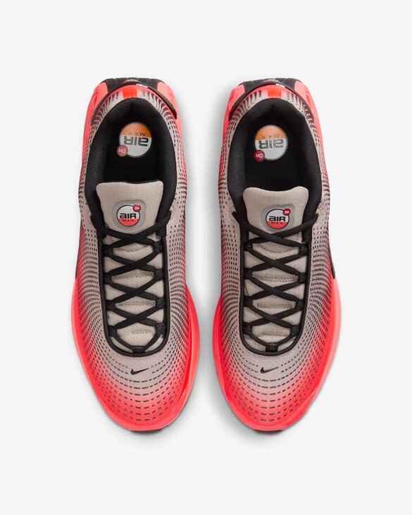Air Max Dn оснащені системою Dynamic Air з двома трубками подвійного тиску, яка забезпечує амортизацію при кожному кроці. Це призвело до створення футуристичного дизайну, який забезпечує комфорт як вдень, так і вночі. Крім того, ця версія відрізняється градієнтним оздобленням верху. Система Dynamic Air складається з двох трубок подвійного тиску. Максимальний тиск у п'яті та мінімальний тиск у середній частині стопи забезпечують рівномірний розподіл повітря всередині кожної пари для плавного переходу при кожному кроці. Багатошарова сітка верху забезпечує легкість і повітропроникність, а тактильний принт створює текстурований ефект. М'який піноматеріал оточує амортизуючу систему для поліпшених відчуттів, забезпечуючи унікальну м'якість і підтримку. Матові акценти.