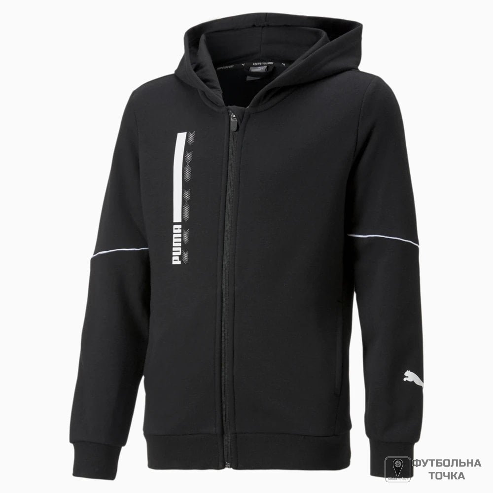 Це худі з капюшоном на блискавці з нашої колекції Active Sports створено для активного проведення часу. Завдяки контрастній облямівці, яскравій графіці PUMA й вологовідвідній технології dryCELL для поліпшеного контролю температури, воно ідеально підходить для багатоденних подорожей.