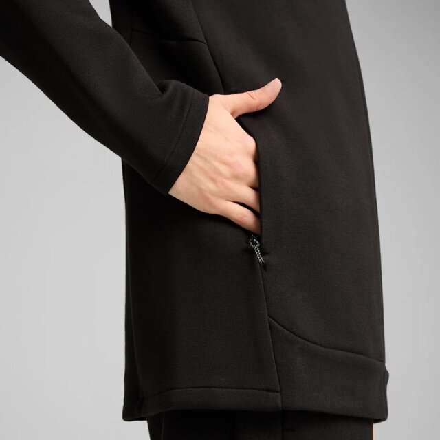 Відкрийте свій стиль у толстовці на блискавці від PUMA. Завдяки технології dryCELL вона збереже вашу свіжість, а передні кишені на блискавці забезпечать надійне зберігання. Облягаючий крій. Капюшон з високою горловиною і світловідбиваючим шнурком. Довгі рукави. Бічні кишені. Гумовий принт з логотипом PUMA No. 1. Деталі брендингу PUMA.
