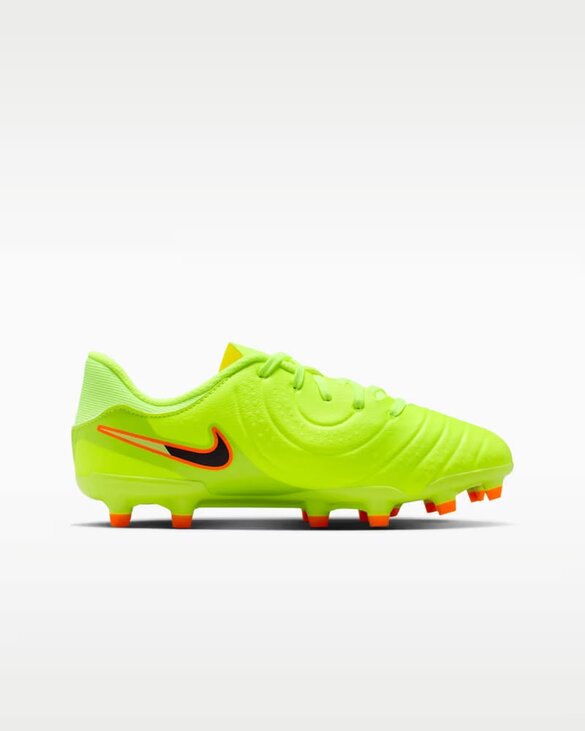 Сделайте игру легкой, надев футбольные бутсы Nike Tiempo Legend X Academy MG Junior с литой конструкцией верха для легкого прикосновения. Созданные для уверенной и позитивной игры, Tiempo Legend X — это самая элегантная и атакующая модель Tiempo. Где бы вы ни оказались на поле, мягкий верх FlyTouch Lite обеспечивает комфорт и близкое ощущение мяча, необходимое для сохранения спокойствия и контроля. Речь об ударах в штрафной площади, пасах под давлением в полузащите и идеальных точных передачах. Статистика самообладания исчерпана. Его полностью спроектированный дизайн мягче натуральной кожи, а обтекаемые вставки из пеноматериала плавно переходят в формованные линии бутс, чтобы максимально амортизировать ваши прикосновения. Материал не растягивается и не требует времени на обкатку. По сути, вы получаете все преимущества кожи без каких-либо недостатков. 2D-зоны касания в виде микроточек усиливают контроль, а подкладка из микрофибры в сочетании с внутренней набивкой в области пятки обеспечивает надежную фиксацию стопы и минимизирует раздражение. Эластичные шнурки без завязок и двойные петли позволяют легко надевать и снимать бутсы. Для всестороннего сцепления подошва имеет полностью круглые шипы в передней части стопы, а также лезвия на носке и пятке, повышая маневренность для быстрых и решительных переходов. Эластичные шнурки без завязок. Петли на пятке и язычке для легкого надевания и снятия. Бутсы Multi-Ground для натуральных и искусственных травяных покрытий.