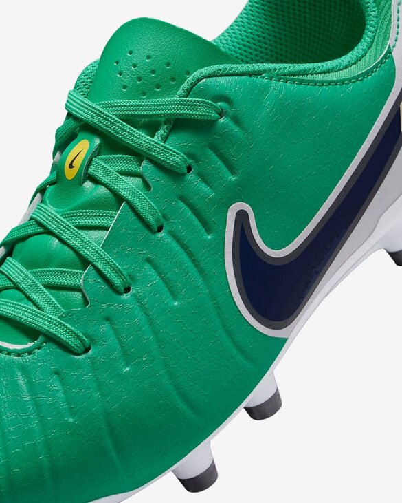 Созданные, чтобы вывести вашу игру на новый уровень, эти бутсы Academy изготовлены из специальной кожи FlyTouch Lite. Она мягче натуральной кожи, адаптируется к форме стопы и не растягивается, позволяя вам задавать темп игры. Legend 10, более лёгкие и изящные, чем любые другие бутсы Tiempo на сегодняшний день, подойдут для любой позиции на поле, будь то точный пас сквозь защиту или откат назад, чтобы остановить прорыв. Микроточки на верхней части увеличивают зоны касания для ударов, дриблинга и передач. Они создают более элегантный вид, убирая дополнительную амортизацию. Более того, они не жертвуют контролем мяча, который так ценен на поле. В этой версии уменьшили количество пенных вставок относительно Tiempo 9, чтобы ваша нога могла быть ещё ближе к мячу, когда он находится под вашим контролем. Вместо этого встроили линии в конструкцию бутс. Искусственная кожа FlyTouch Lite невероятно мягкая. Она позволяет шипам плотно прилегать к стопе, обеспечивая комфорт без чрезмерного растяжения материала. Конструкция язычка с дополнительной подкладкой обеспечивает уверенность и комфорт в ключевых зонах удара. Подкладка из микрофибры обеспечивает превосходные ощущения. Подошва с коническими шипами в области пятки обеспечивает оптимальное сцепление и устойчивость при торможении и смене направления движения в любых условиях.