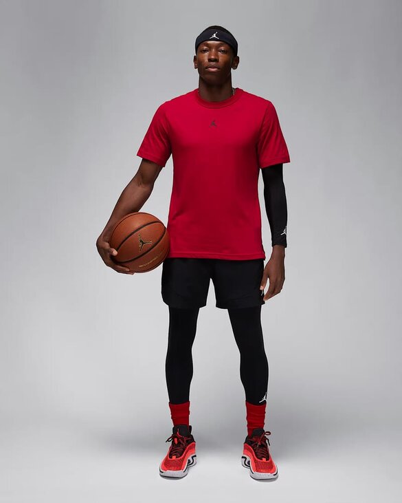 Эта футболка изготовлена из мягкой хлопковой ткани с технологией защиты от пота, которая помогает сохранять свежесть от пробуждения до отбоя. Технология Nike Dri-FIT отводит пот от кожи и ускоряет его испарение, помогая вам оставаться в сухости и комфорте. Минималистичный трафаретный принт Jumpman делает твой образ прямолинейным.