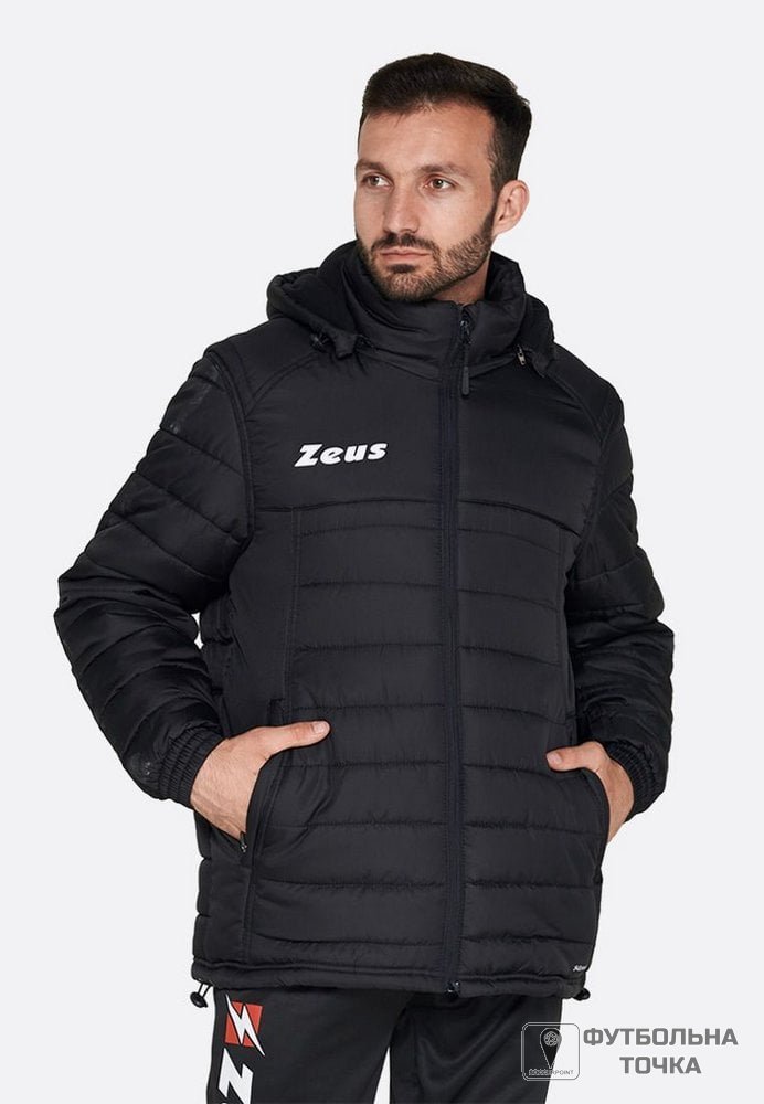 GIUBBOTTO MONOLITH – зимняя мужская куртка от итальянского бренда Zeus. Данная модель пошита из полиэстера. В качестве наполнителя также использовался этот материал. Благодаря такой компоновке, куртка практически не будет промокать под снегом или дождем. А ворсистая подкладка прекрасно сохранит тепло. Для дополнительной защиты от ветра и холода предусмотрен высокий ворот и капюшон. Куртка застегивается на прочный замок-молнию. Имеет манжеты на резинках и карманы. Хорошо подойдет для тех, кто хочет защитить себя от холода во время и после тренировок. Также может использоваться для повседневного ношения. Материал куртки приятный на ощупь, легкий, но одновременно устойчив к разрывам. С дизайнерской точки зрения данная модель сочетает моду следующего сезона и практичность.