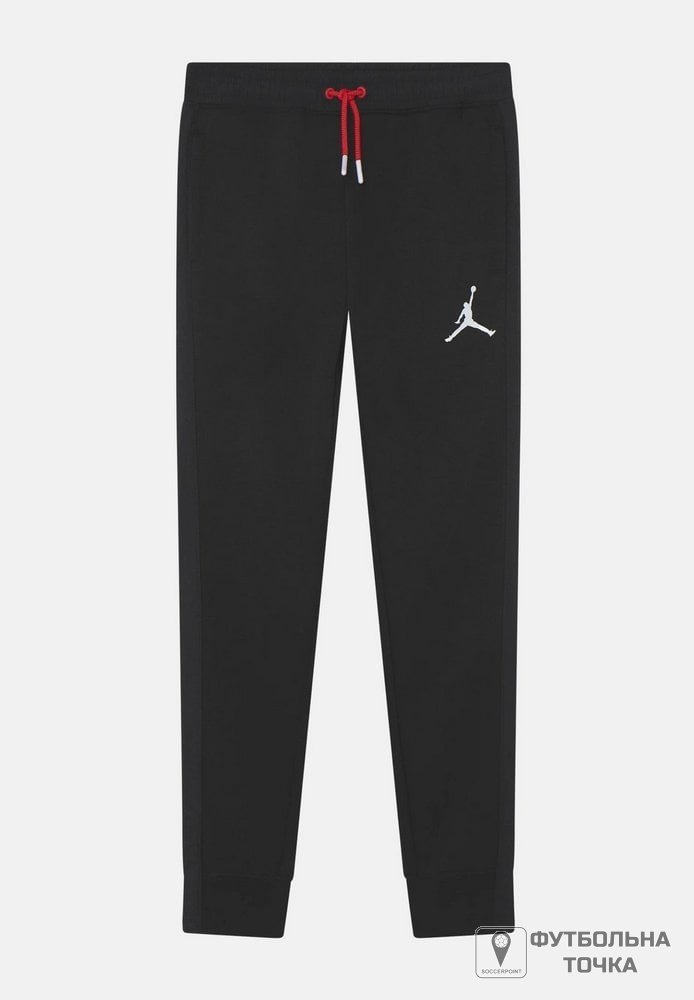 Черные спортивные штаны для детей с логотипом Jumpman. Талия и лодыжки выполнены из эластичной ткани. Талия регулируется шнурком. Осенне-зимний сезон.