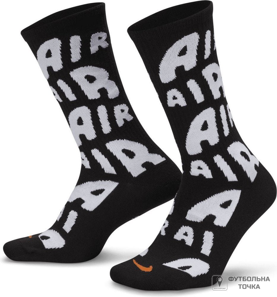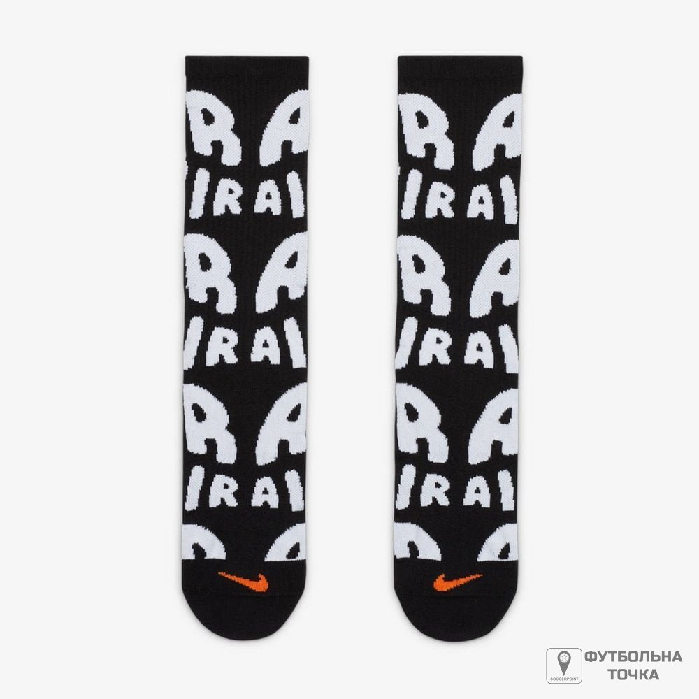 Ці шкарпетки, натхненні культовим взуттям Uptempo, відрізняються унікальним дизайном завдяки в'язаній графіці, яка імітує бічну графіку Air. Крім того, дизайн Swoosh імітує аналогічне розташування на самому взутті. Гумка навколо склепіння стопи підтримує. П'ята та носок посилені.