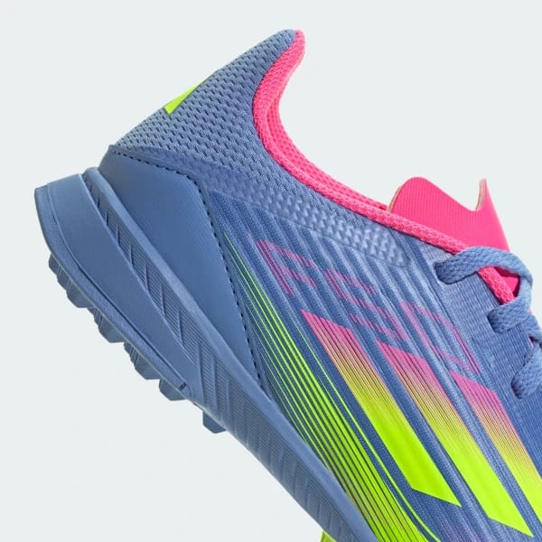 Розганяйся до максимуму в легких футбольних бутсах adidas F50, створених для швидкості. Верх з Fiberskin з принтом Sprintgrid з перфорованим язичком забезпечують надійну фіксацію і комфорт. Гумова підошва з шипами, спеціально розроблена для штучного газону, в поєднанні з м'яким EVA амортизує кожен крок, даючи впевненість на полі.