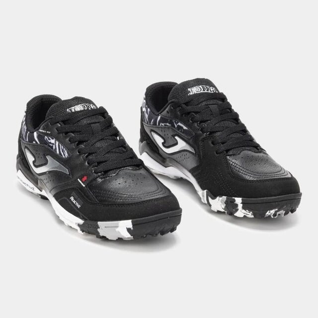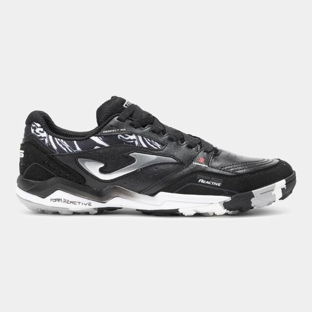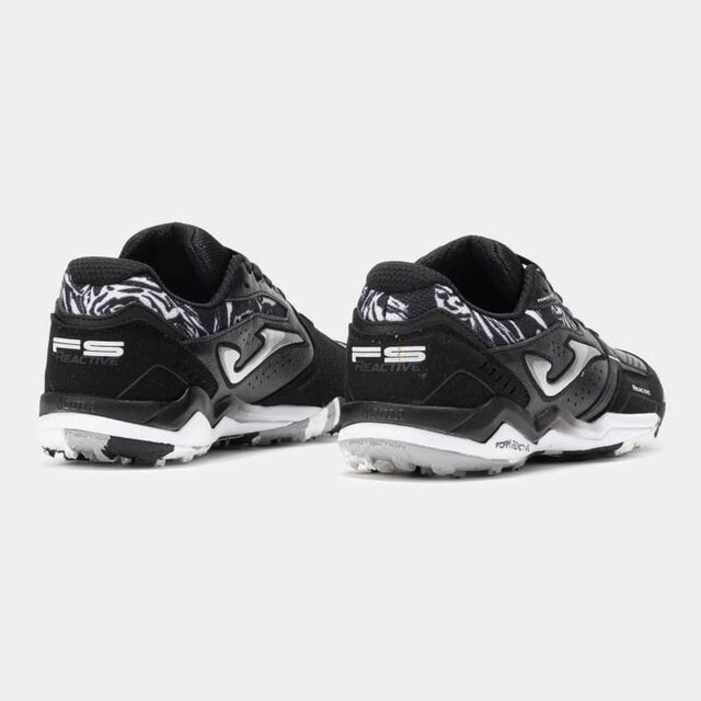 Футбольні бутси для гри на трав'яному покритті (синтетичному та килимовому). Модель FS Reactive розроблена для футболістів, які цінують передові технології та високу продуктивність. Високоякісні матеріали підносять ці кросівки на вершину футбольного та футзального каталогу Joma. Їх тестували такі професійні гравці, як Ф. Валеріо і Лукао. Верхня частина виконана переважно зі шкіри. Цей матеріал ідеально підходить для цього виду спорту завдяки своїй міцності, гнучкості, повітропроникності і хорошому контакту з м'ячем. Посилена вентиляція з технологією VTS. Захисна вставка PROTECTION в області носка. Проміжна підошва в нижній частині виготовлена з матеріалу FOAM REACTIVE. Висока ударостійкість пом'якшує крок і забезпечує винятковий комфорт. Верхня частина виготовлена з високощільного філону для більшої стійкості. Гумова підошва DURABILITY з високою стійкістю до стирання і відмінним зчепленням з поверхнею. Підошва має багатошипову структуру, яка мінімізує тиск на крок, забезпечуючи хорошу підтримку.