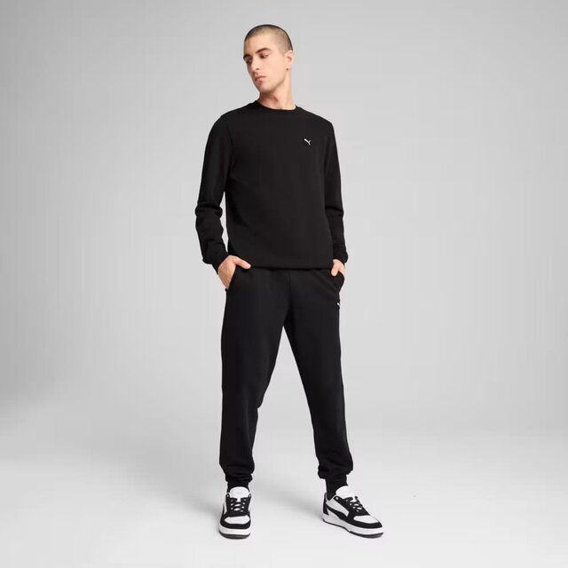 Ці штани стануть улюбленим предметом у вашому гардеробі casual. Модель має пояс на резинці із зав'язками всередині для індивідуальної посадки, а також відрізняється елегантними манжетами в рубчик і прикрашена вишитим логотипом PUMA Cat. Стандартний крій. Облегання по низу. Манжети в рубчик з окантовкою. Бічні кишені. Деталі фірмового оформлення PUMA.