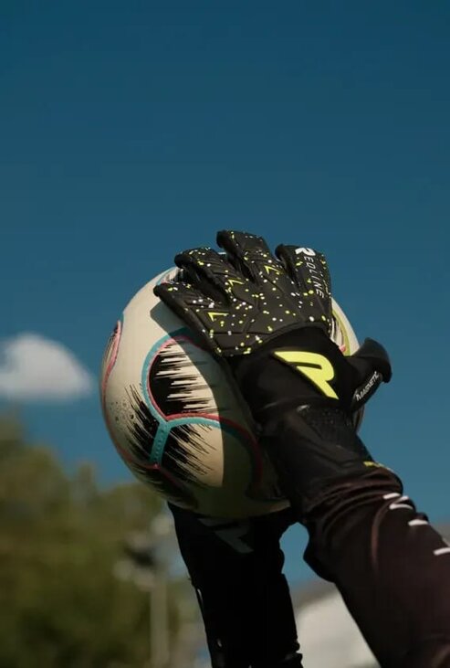 Збільшена площа латексу в області зап’ястя дозволяє краще фіксувати м’яч, а сама рукавиця щільно облягає руку — зручно та впевнено в будь-якій ситуації.