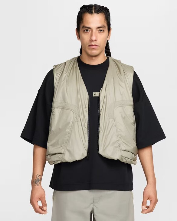 Додайте легкого тепла і глибоких кишень до свого вбрання за допомогою цього просторого жилета. Виготовлений у стилі вінтажного рибальського жилета, він зроблений з гладкого та атласного нейлону ріпстоп з легким утеплювачем.
