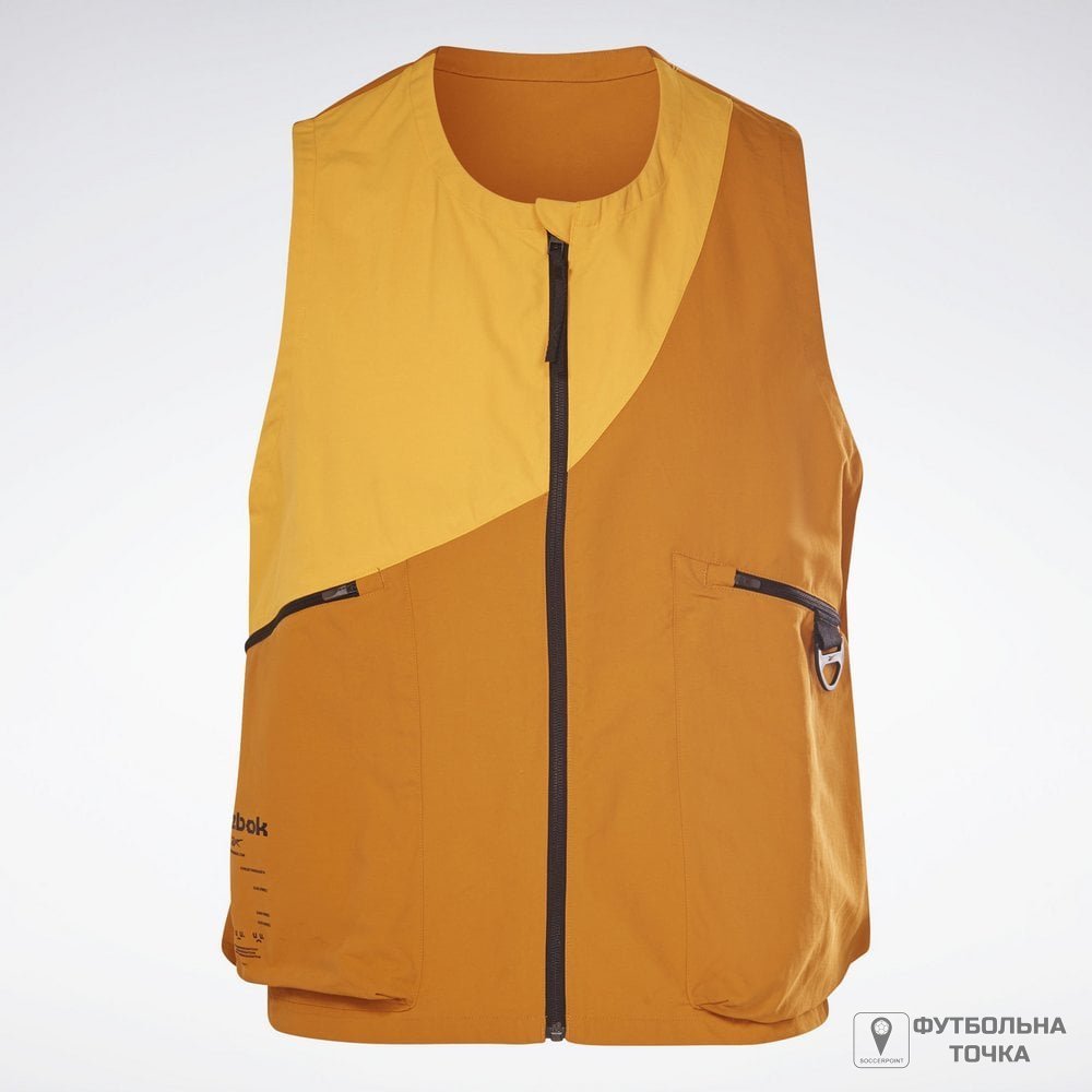 Жилет із спеціальною кишенею для куртки на спині У цьому жилеті Reebok так і хочеться вирушити назустріч невідомому. Все потрібне буде під рукою в кишенях на блискавці. Тканина з водовідштовхувальним просоченням захистить від опадів. Вільний крій Матеріал: 100% нейлон, гладка тканина Водовідштовхувальне просочення Блискавка по всій довжині; круглий комір Потайні кишені на блискавці Півкругла пряжка Спеціальна кишеня для куртки на спині Колір: Radiant Ochre